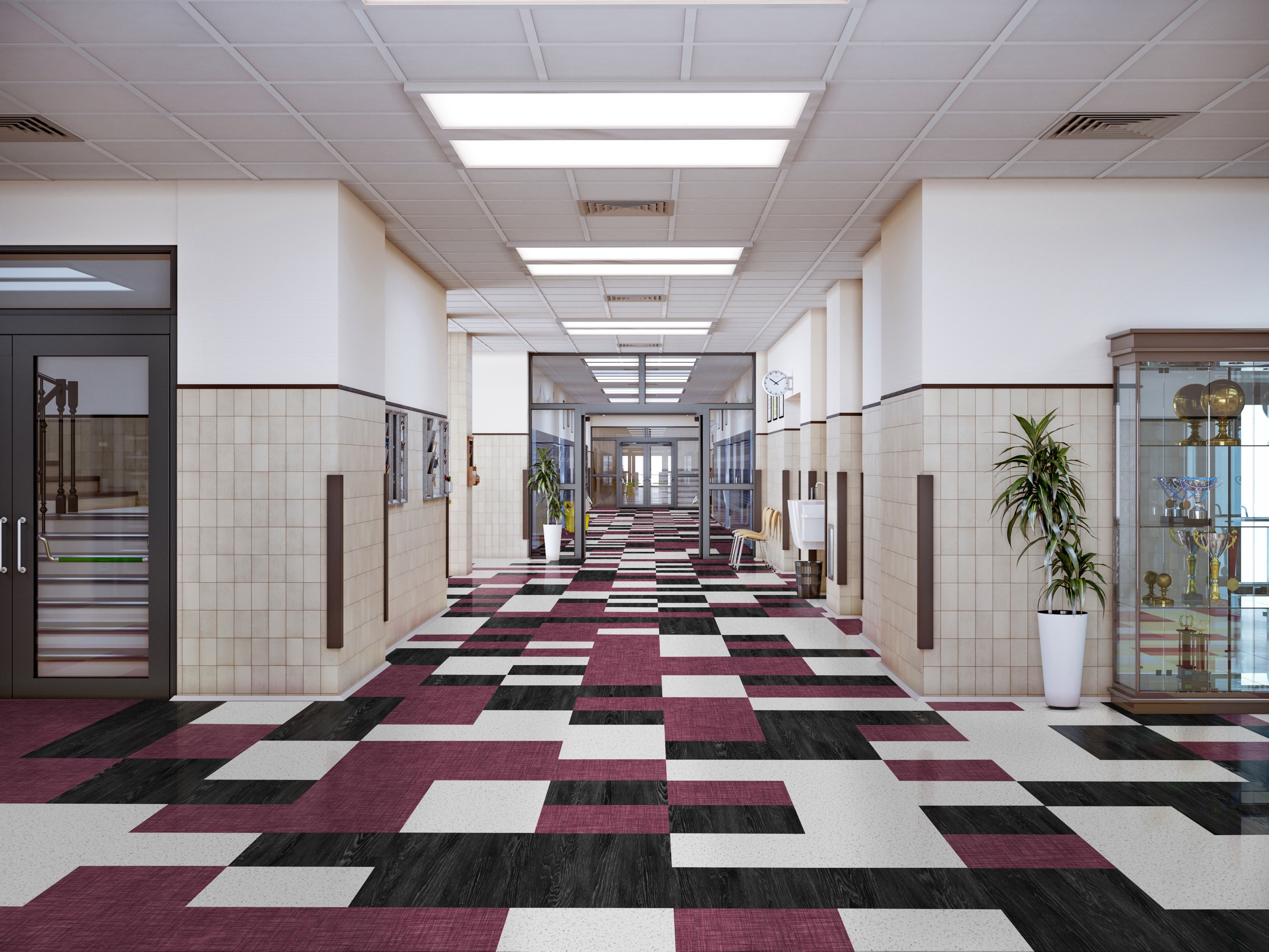 school hallway interior 3d illustration